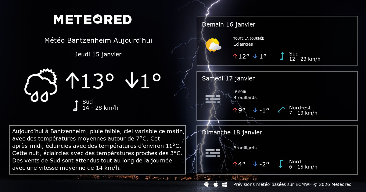 Prévisions météorologiques gratuites à 15 jours pour la ville colmar.