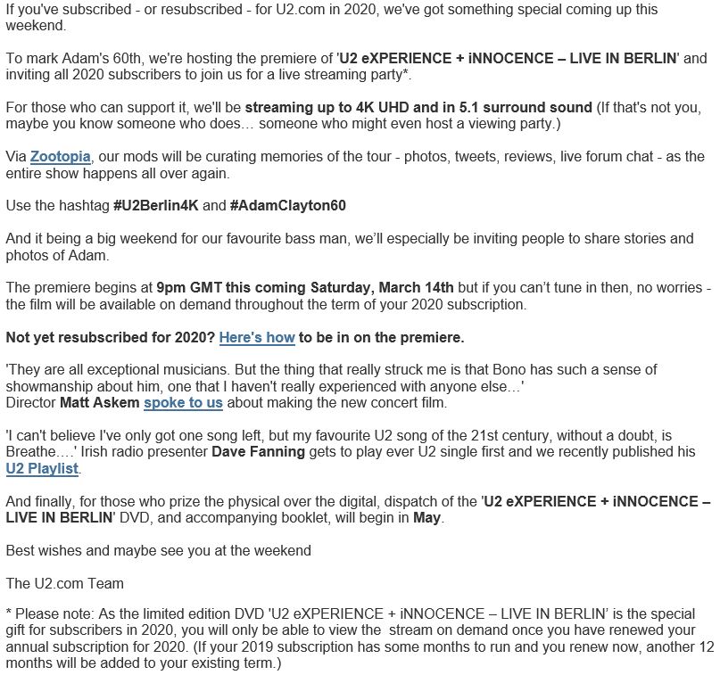 visitez l'article complet ici : https://www.universal-music.de/u2 The u2 innocence + experience tour was in support of their songs of innocence album which u2 released september 9, 2014. It renews the sound of the band, but it preserves the magic u2 essence. Sleep like a baby tonight u2.