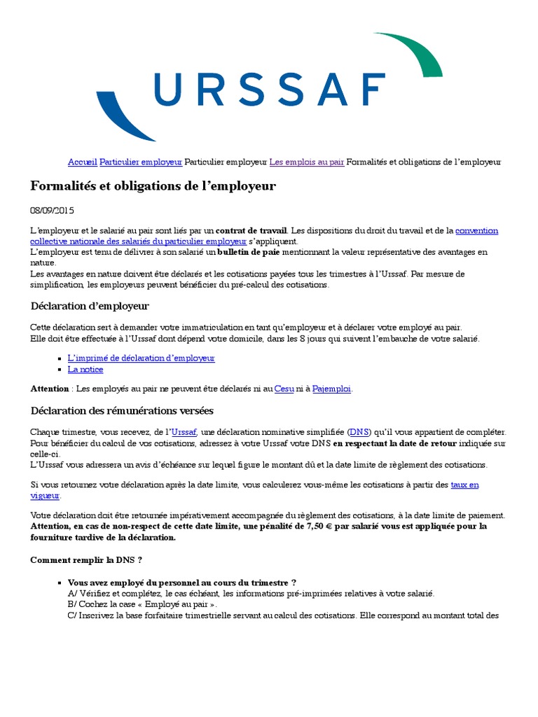 Certaines d'entre elles ont été reprises dans l'article 20 de la loi du 3 juillet 1978.cela étant, cette disposition ne reprend pas toutes les obligations de l'employeur étant donné que beaucoup d'entre elles sont déterminées par des arrêtés et des conventions. Lors de l'embauche du salarié, l'employeur lui fournit une copie de la déclaration préalable à l'embauche (dpae) ou de l'accusé de réception délivré par l'organisme destinataire de cette déclaration (urssaf ou caisse de msa pour les salariés agricoles). Obligation de l'employeur vis ?